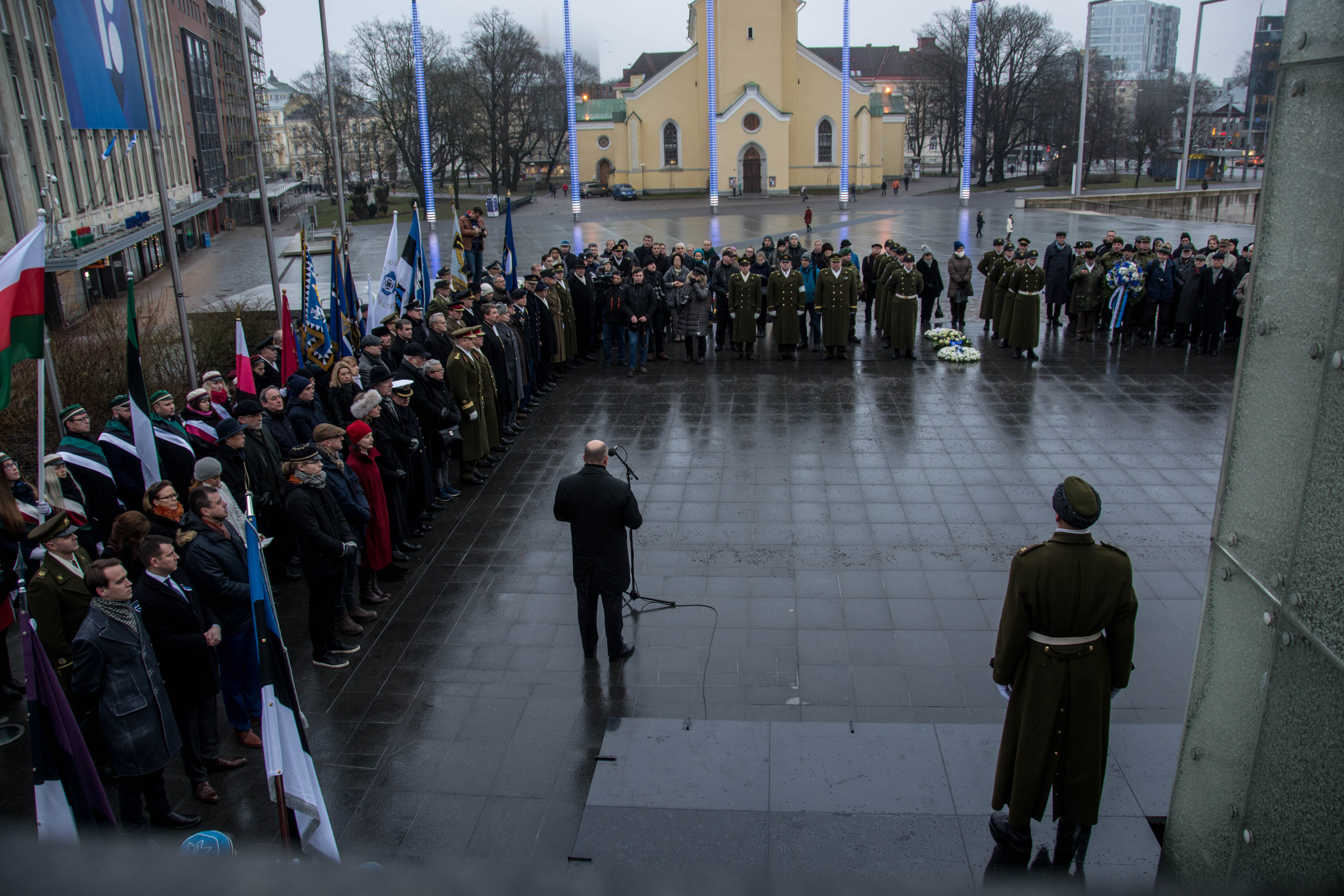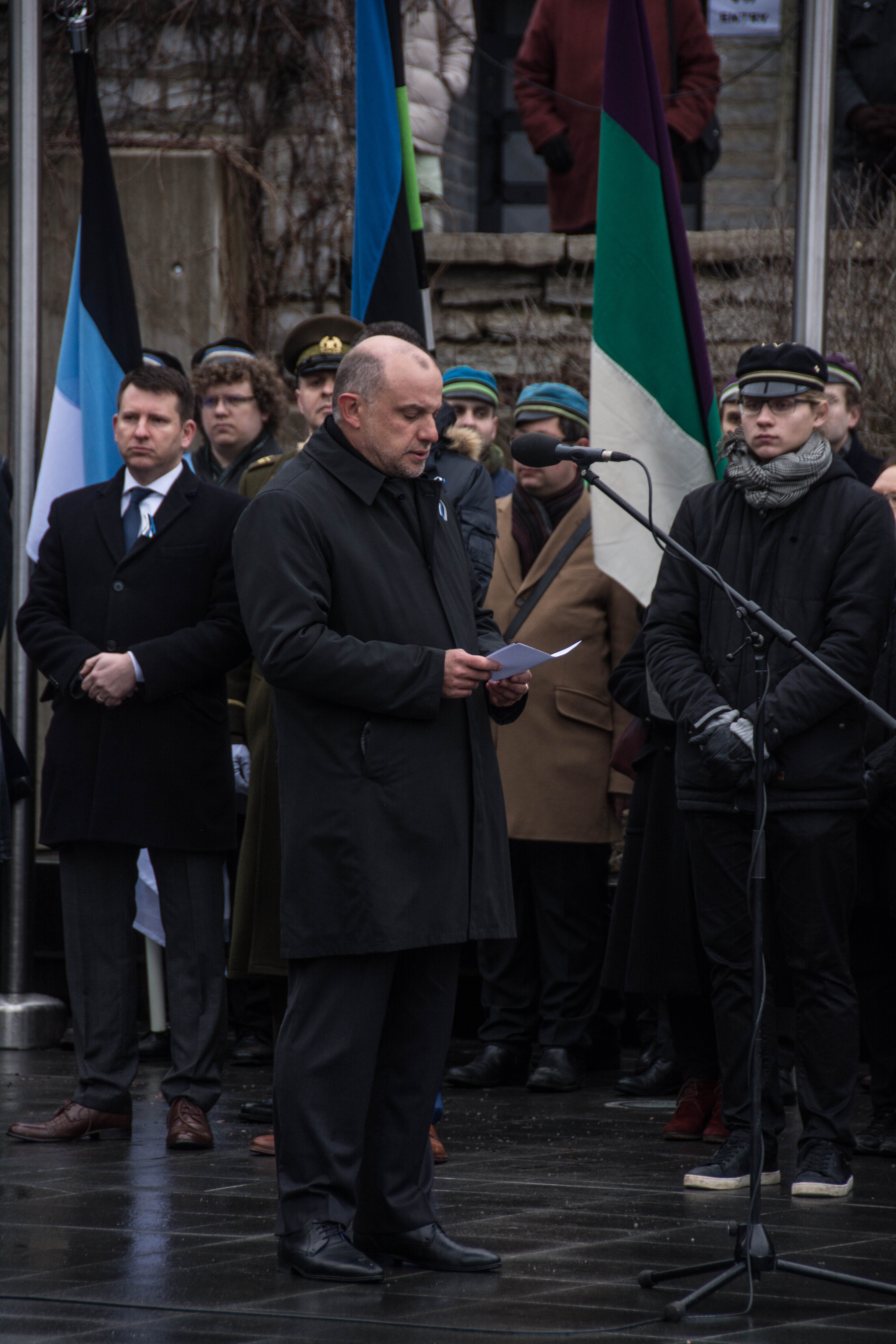 The ceremony in Tallinn included speeches by Minister of Defence Jüri Luik (IRL) and representatives of the Tallinn Secondary School of Science student body as well as the League of Estonian Corporations (EKL).