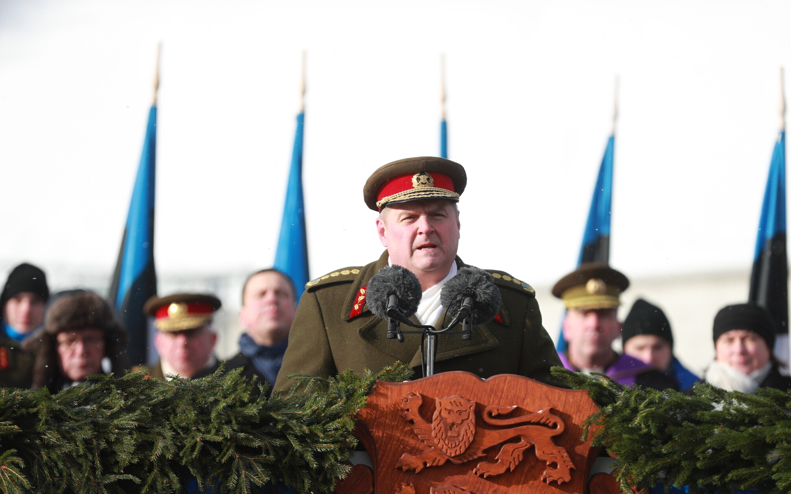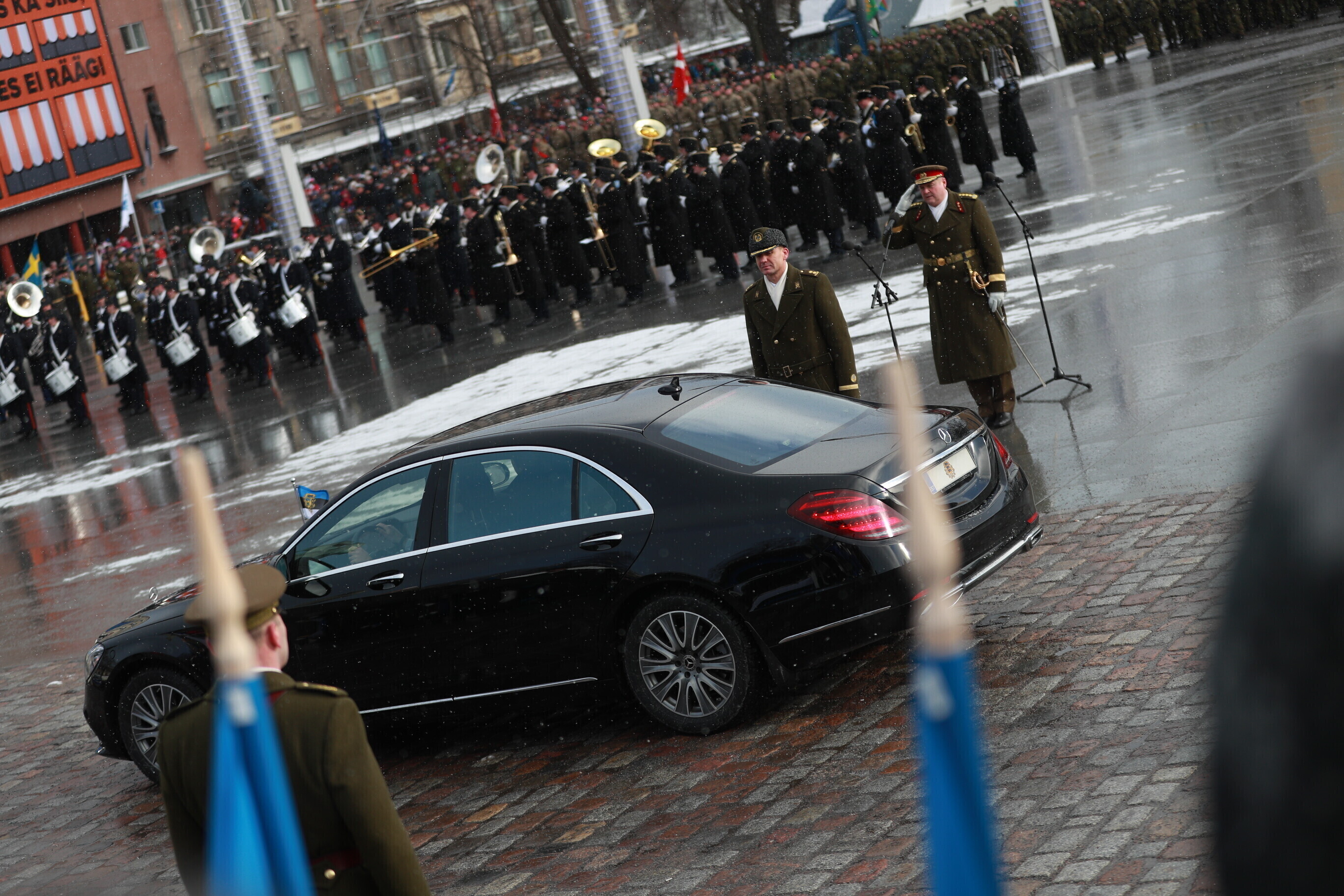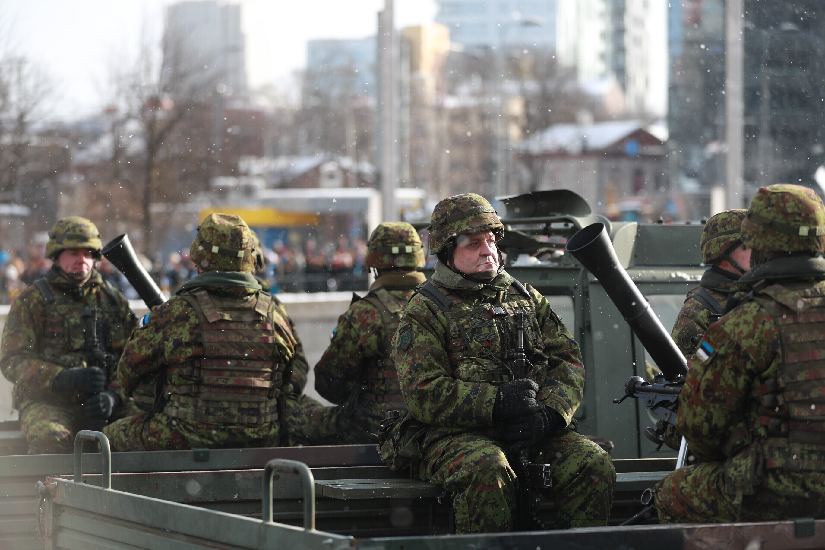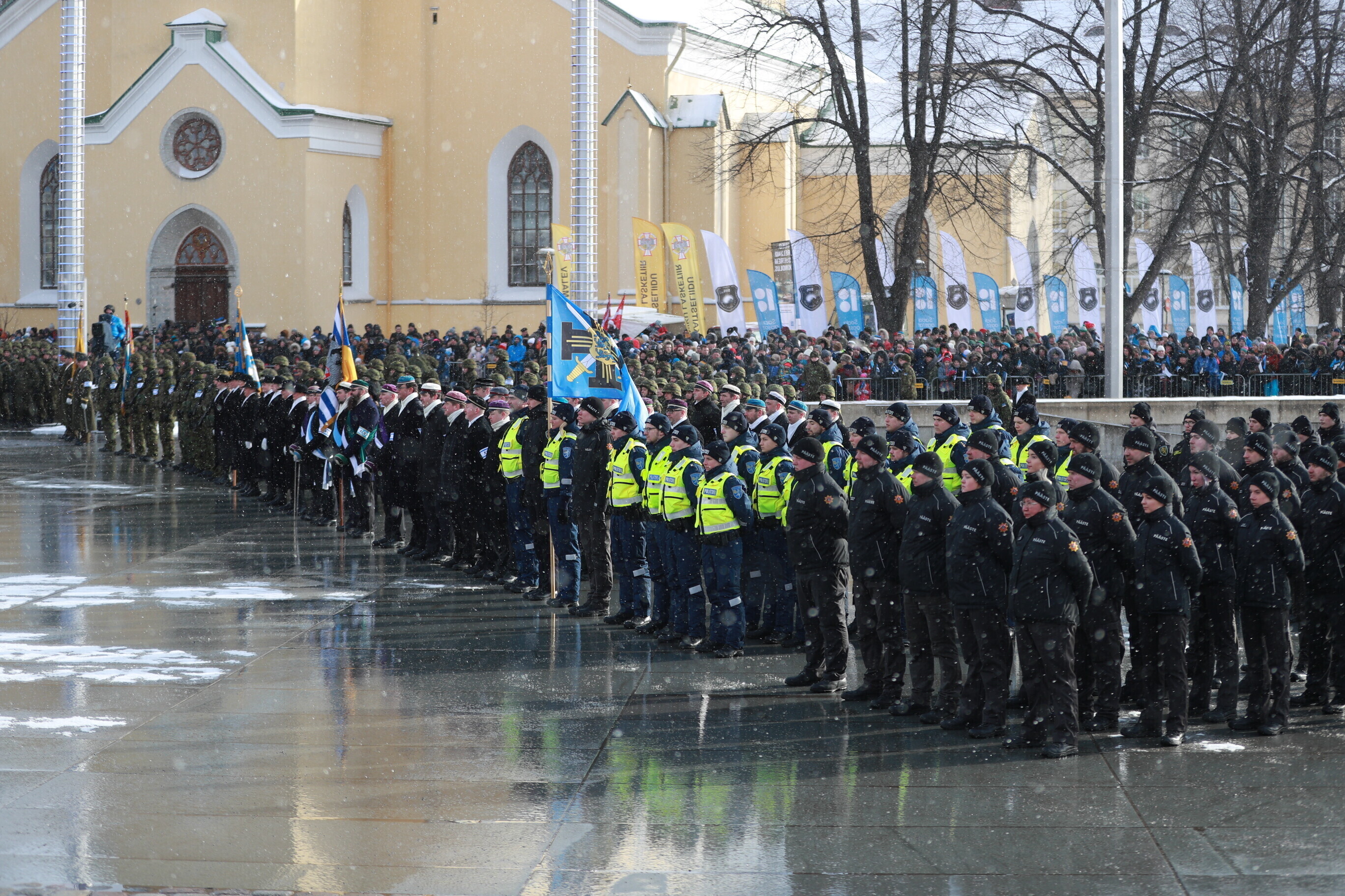 The occasion of the 100th anniversary of Estonian statehood was celebrated with a military parade on Tallinn's Freedom Square. The parade included some 1,100 participants and more than a hundred units of military equipment. The parade was led by Gen. Riho Terras, President Kersti Kaljulaid was present to greet the different units.