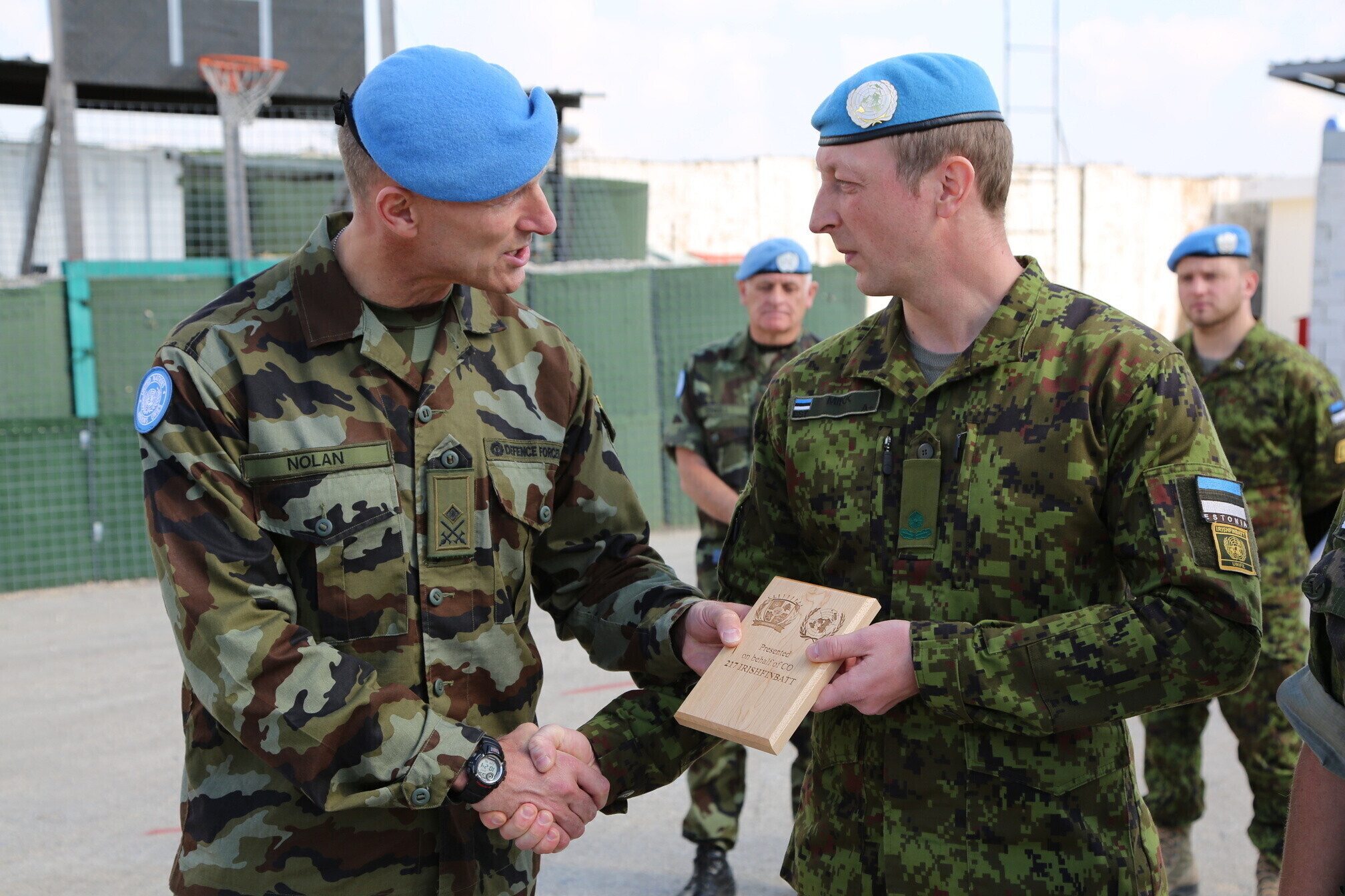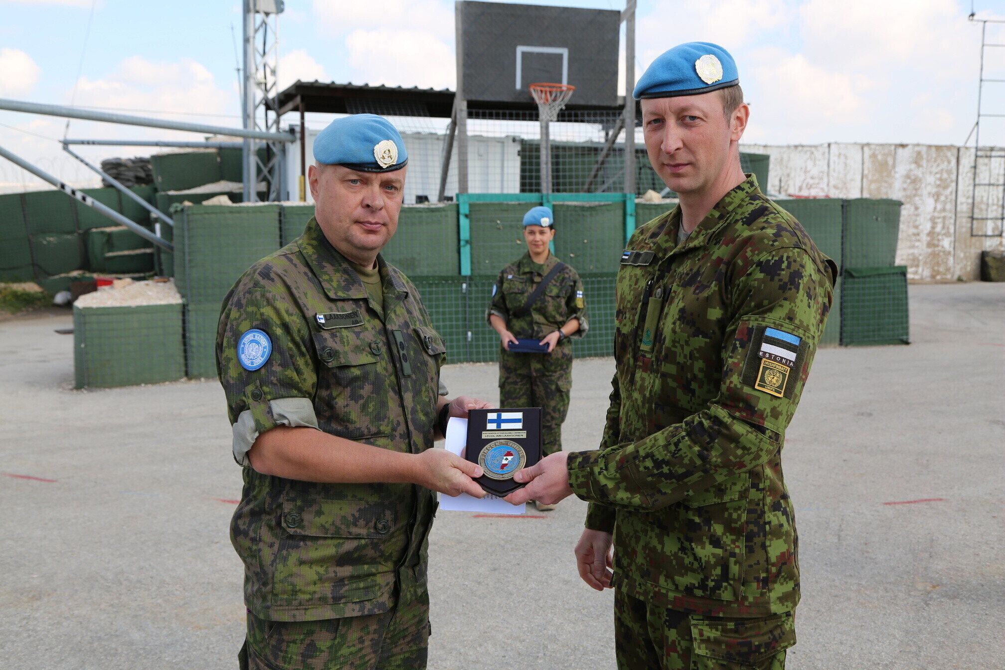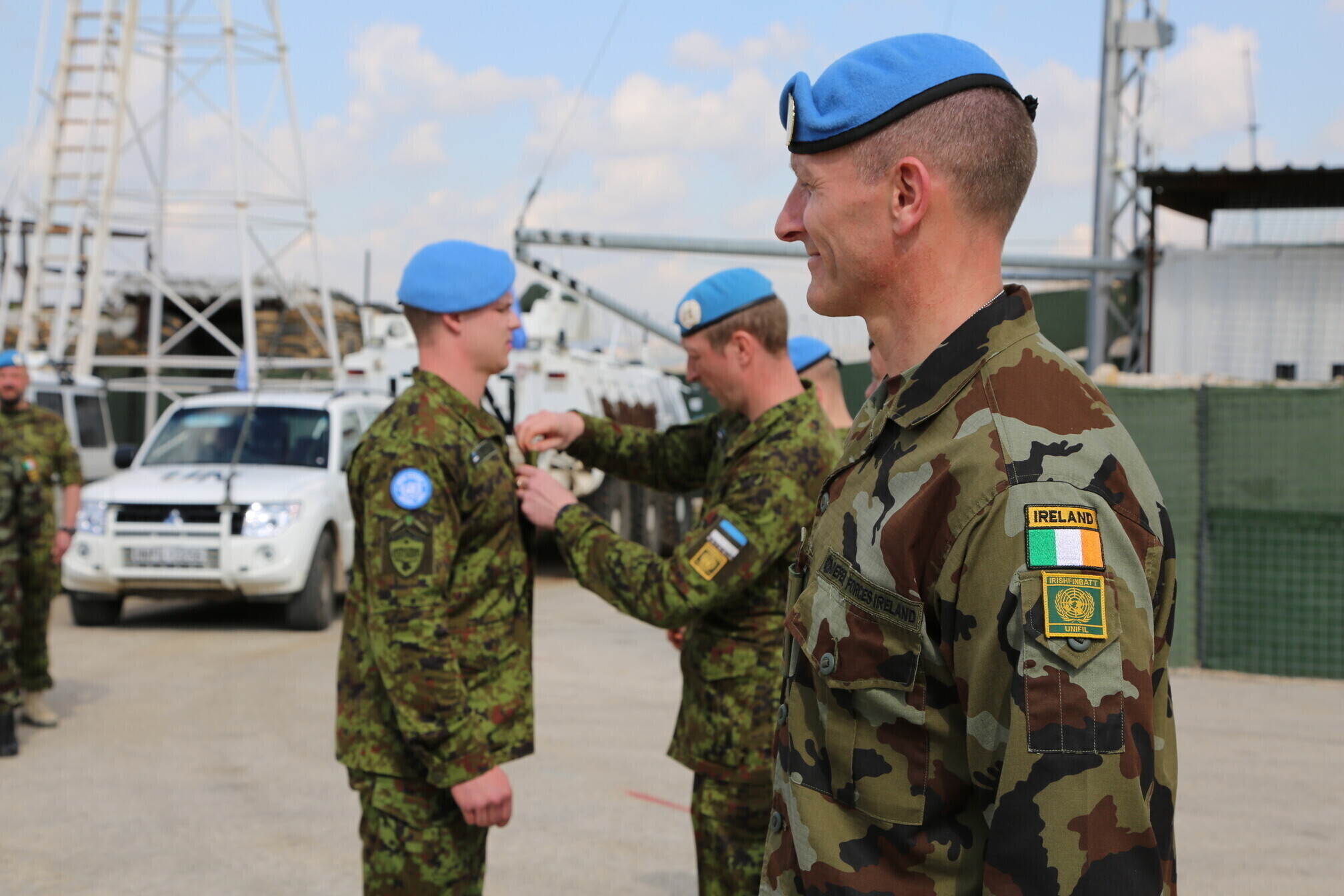 At the formation, promoted Estonian servicemen were given their new insignia, and FINIRISHBATT commander Lt. Col. Neil Nolan, Finnish contingent commander Lt. Col. Ari Laaksonen and joint Estonian-Finnish A Company commander Maj. Jussi Asiakainen gave speeches.