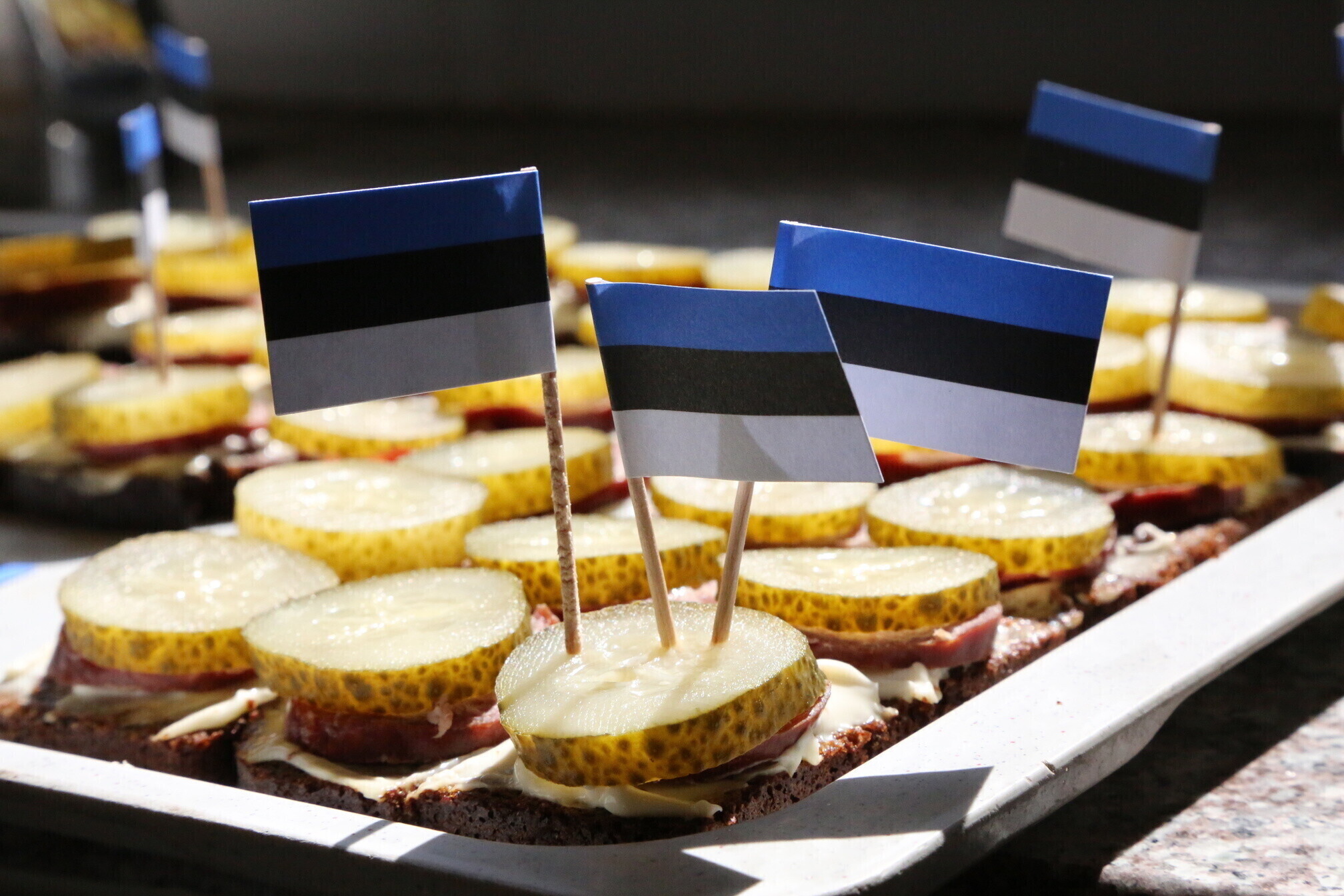 The troops then watched the military parade that took place in Tallinn's Freedom Square that morning and ate a lunch whose menu included Estonian foods and drinks sent from the homeland for the occasion. The Estonian servicemen also received Independence Day greeting cards made for them by the children of Väike Päike Kindergarten in Tartu.