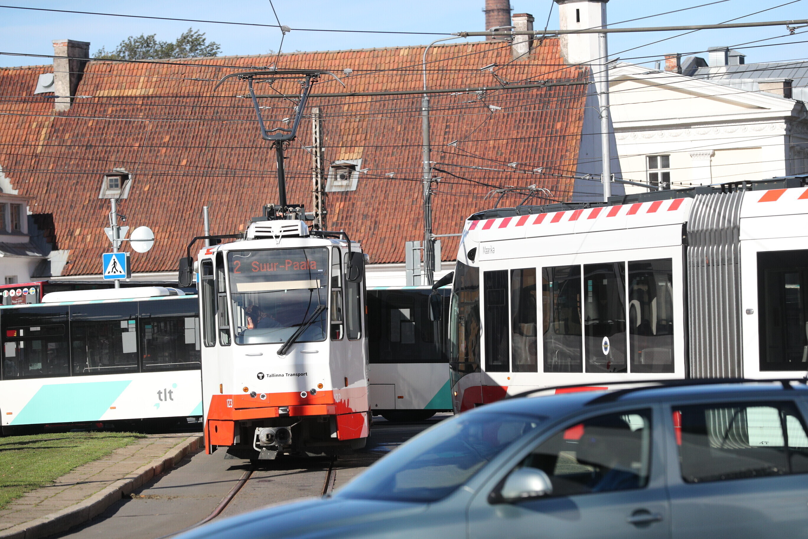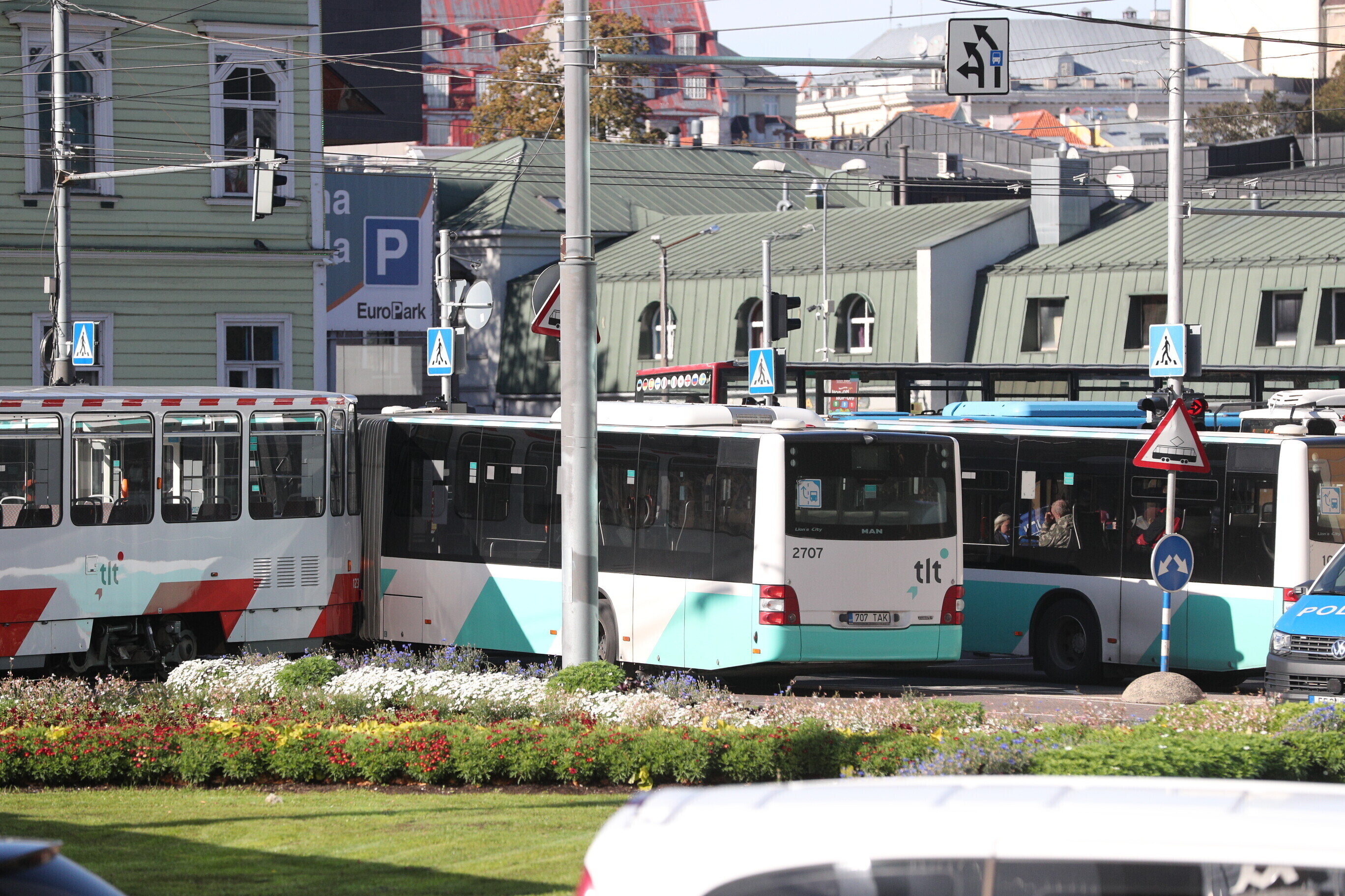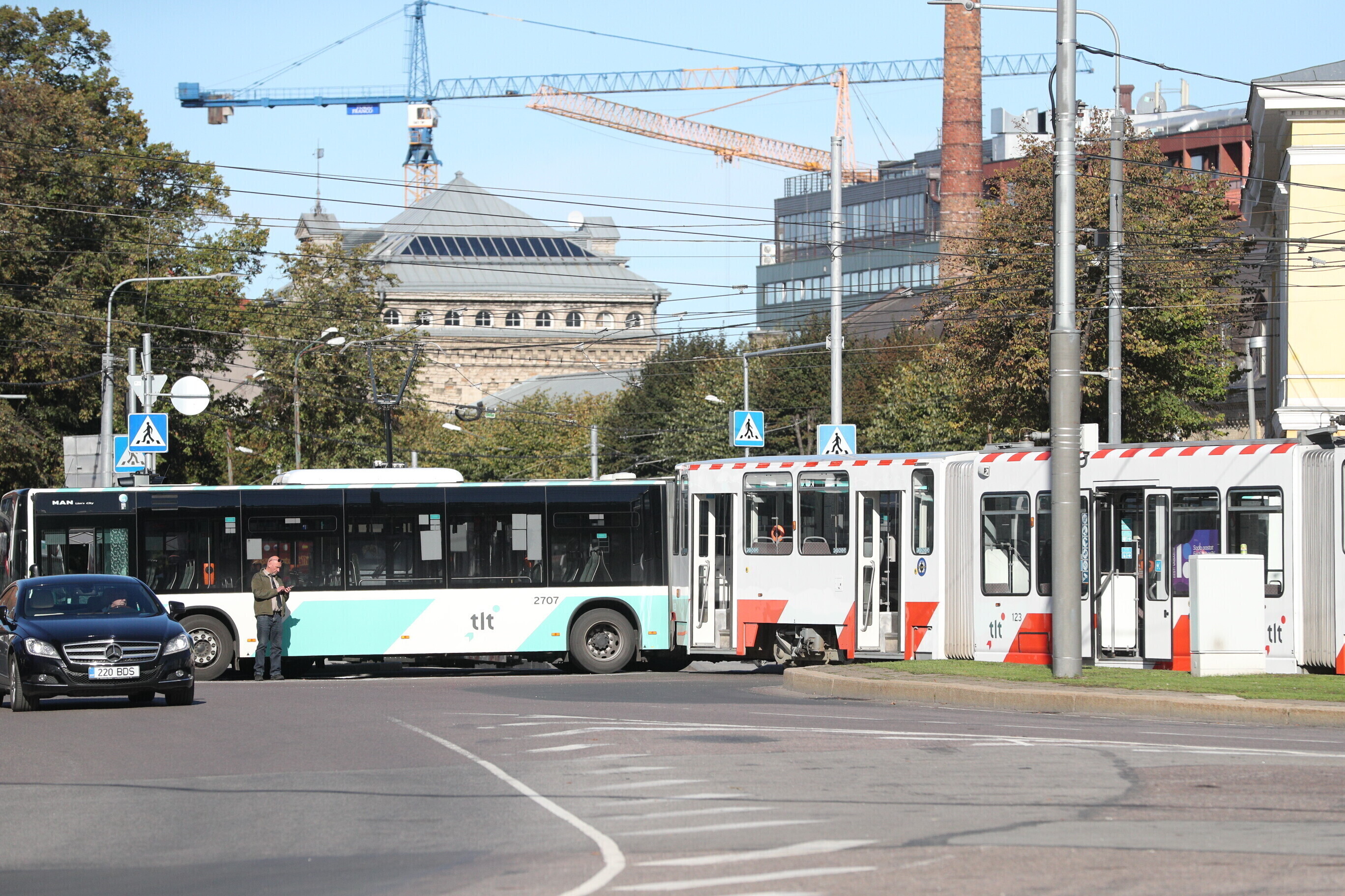 Traffic was jammed by a bus and tram colliding in the roundabout at Tallinn's Viru Square shortly after 14:00 EEST on Friday.