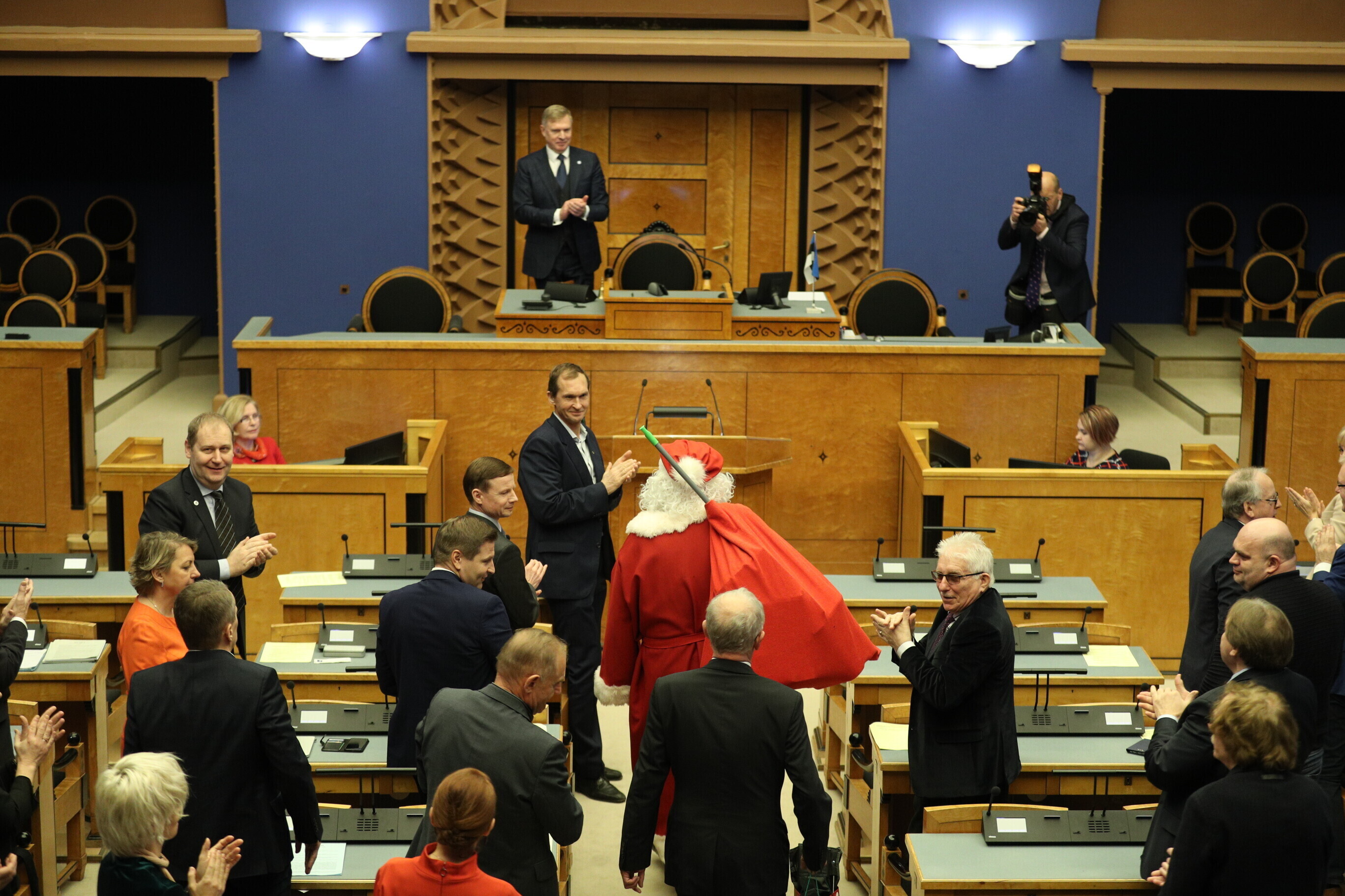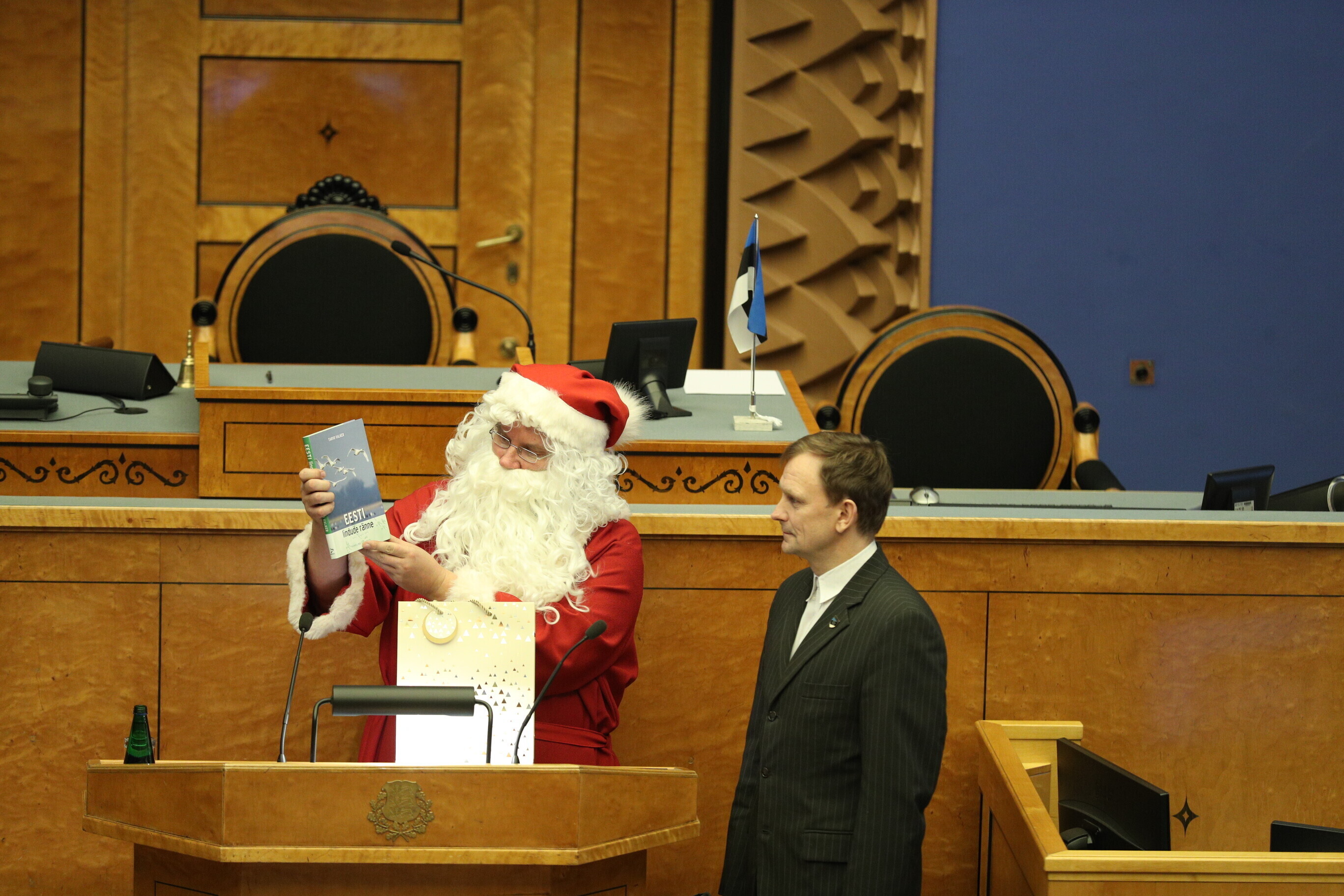 According to tradition, Santa Claus paid a visit to the Riigikogu during its final sitting of the calendar year, sharing banter and gifts alike with the Estonian MPs.