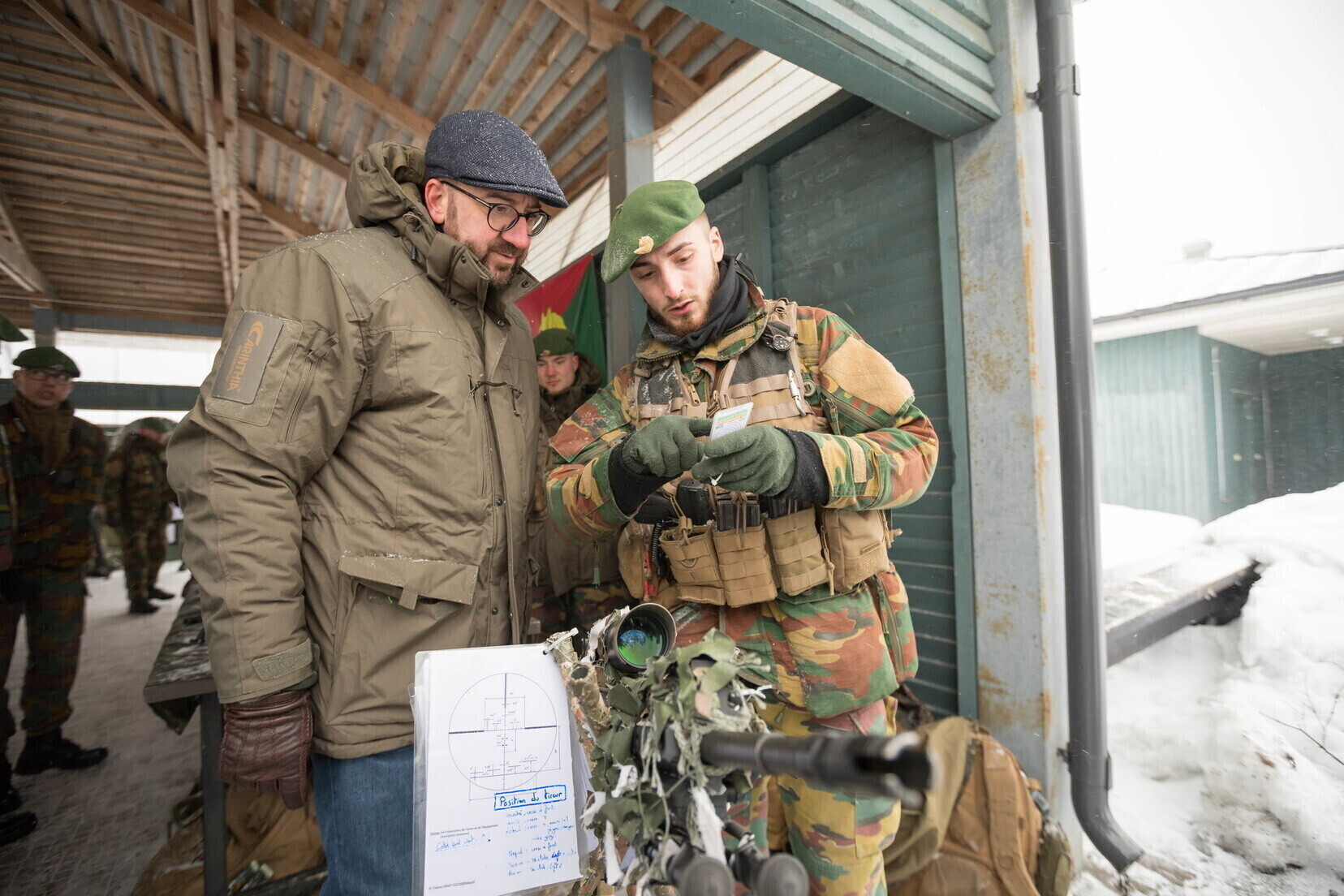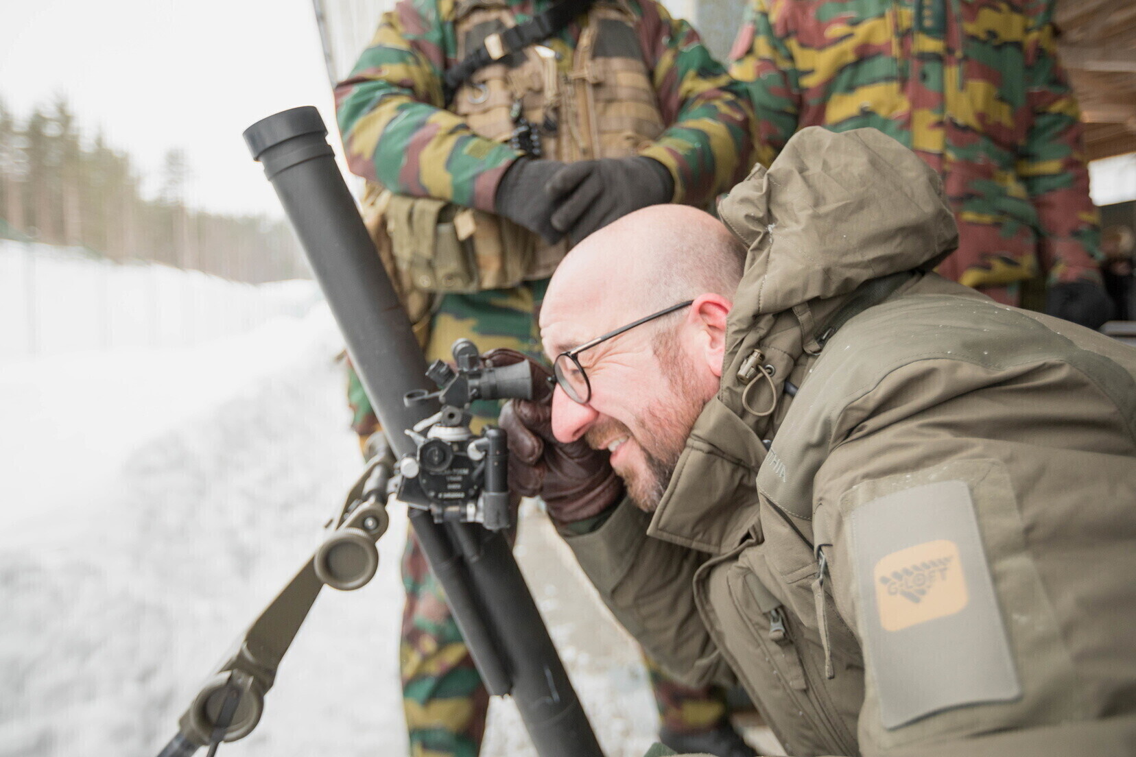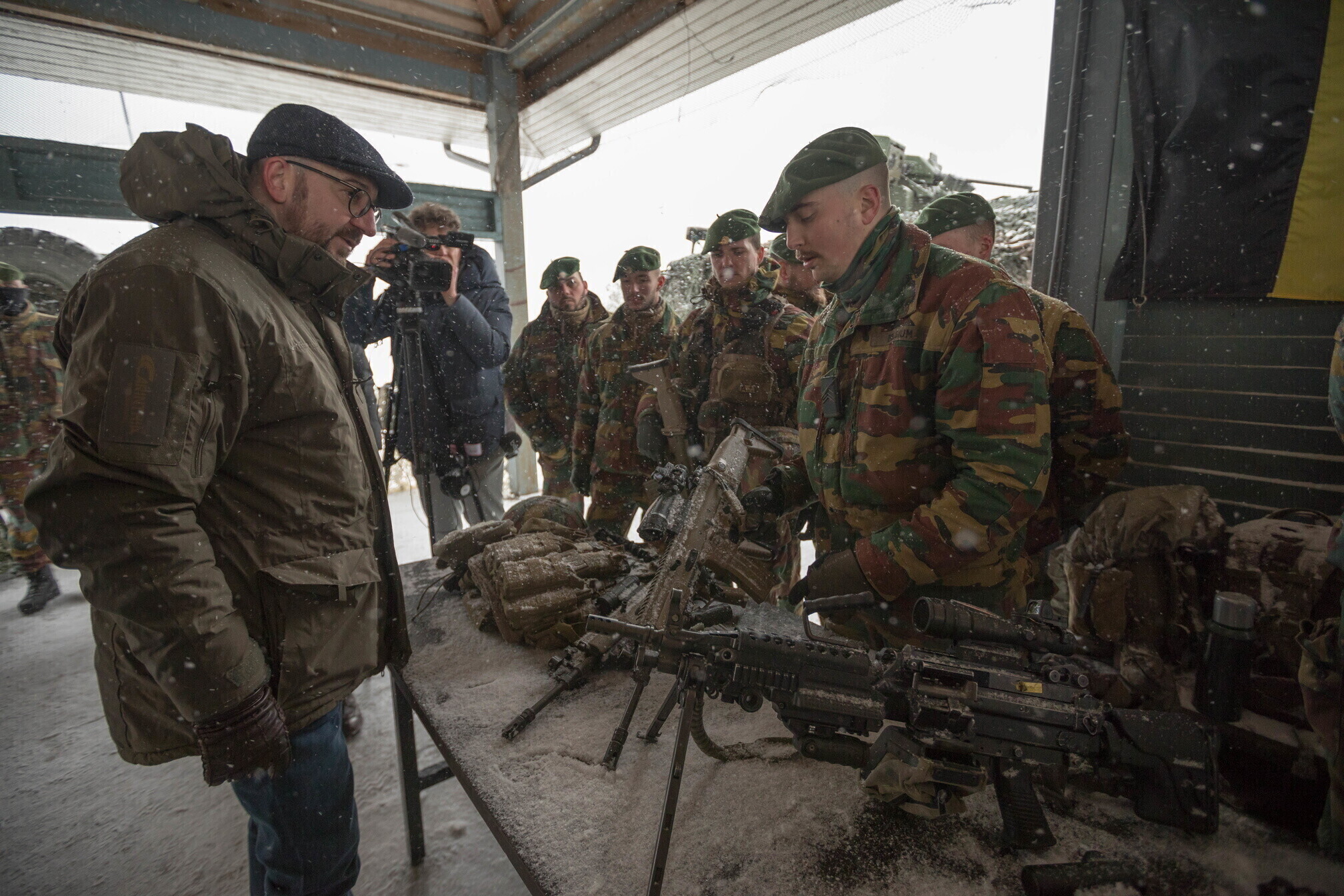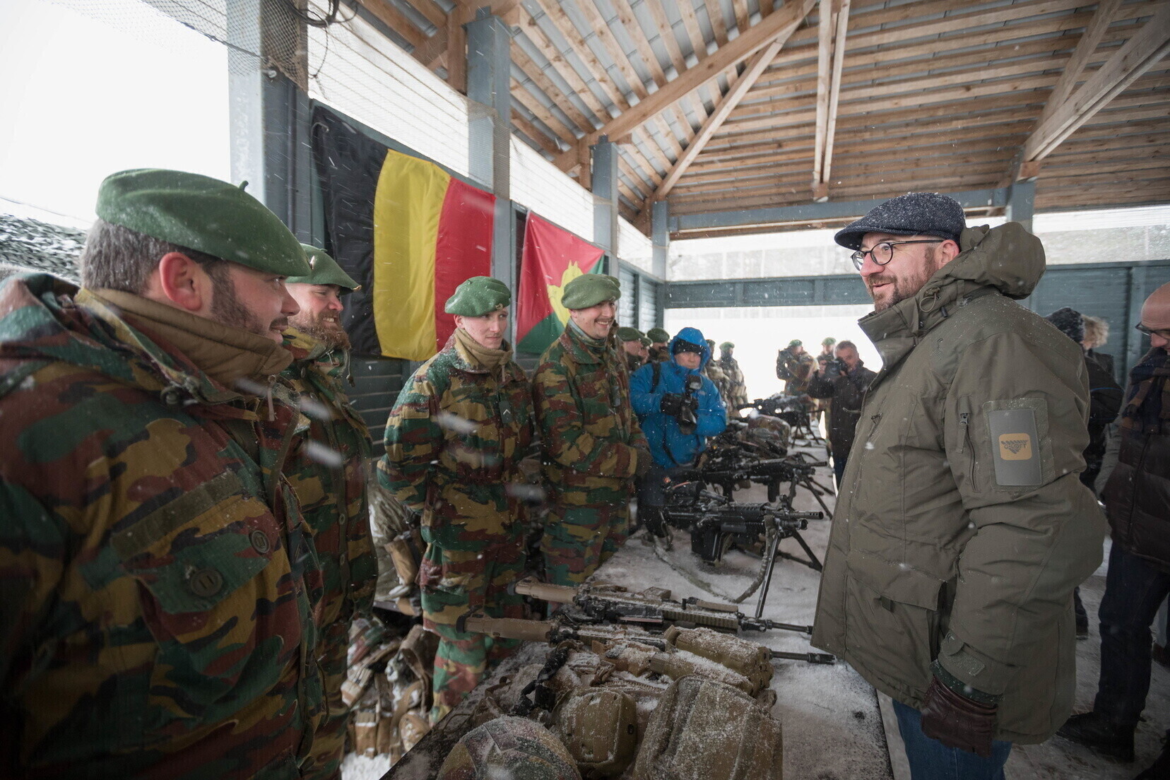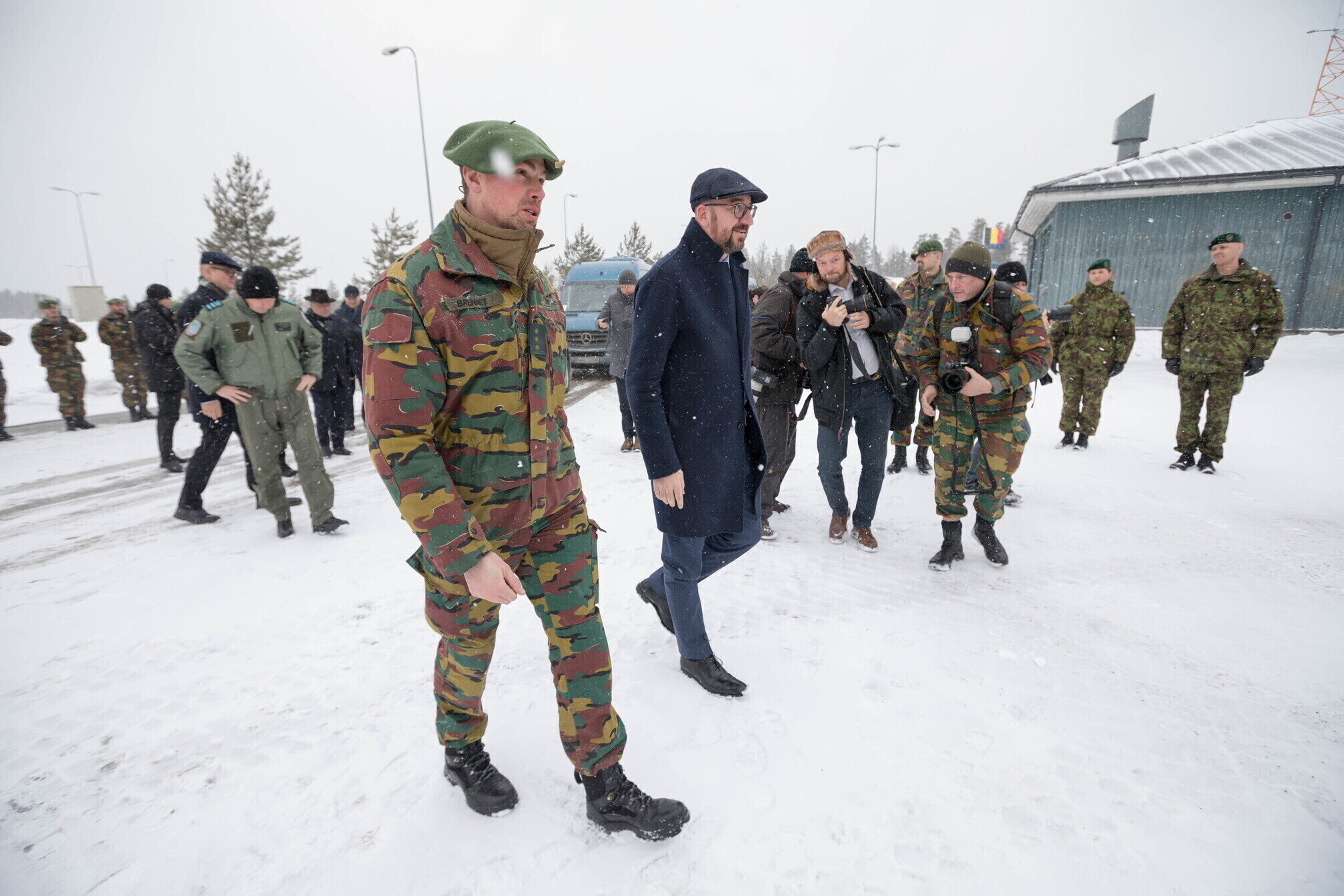 Belgian Prime Minister Charles Michel (Mouvement Réformateur) met with NATO troops from his country serving in Estonia, on Wednesday.