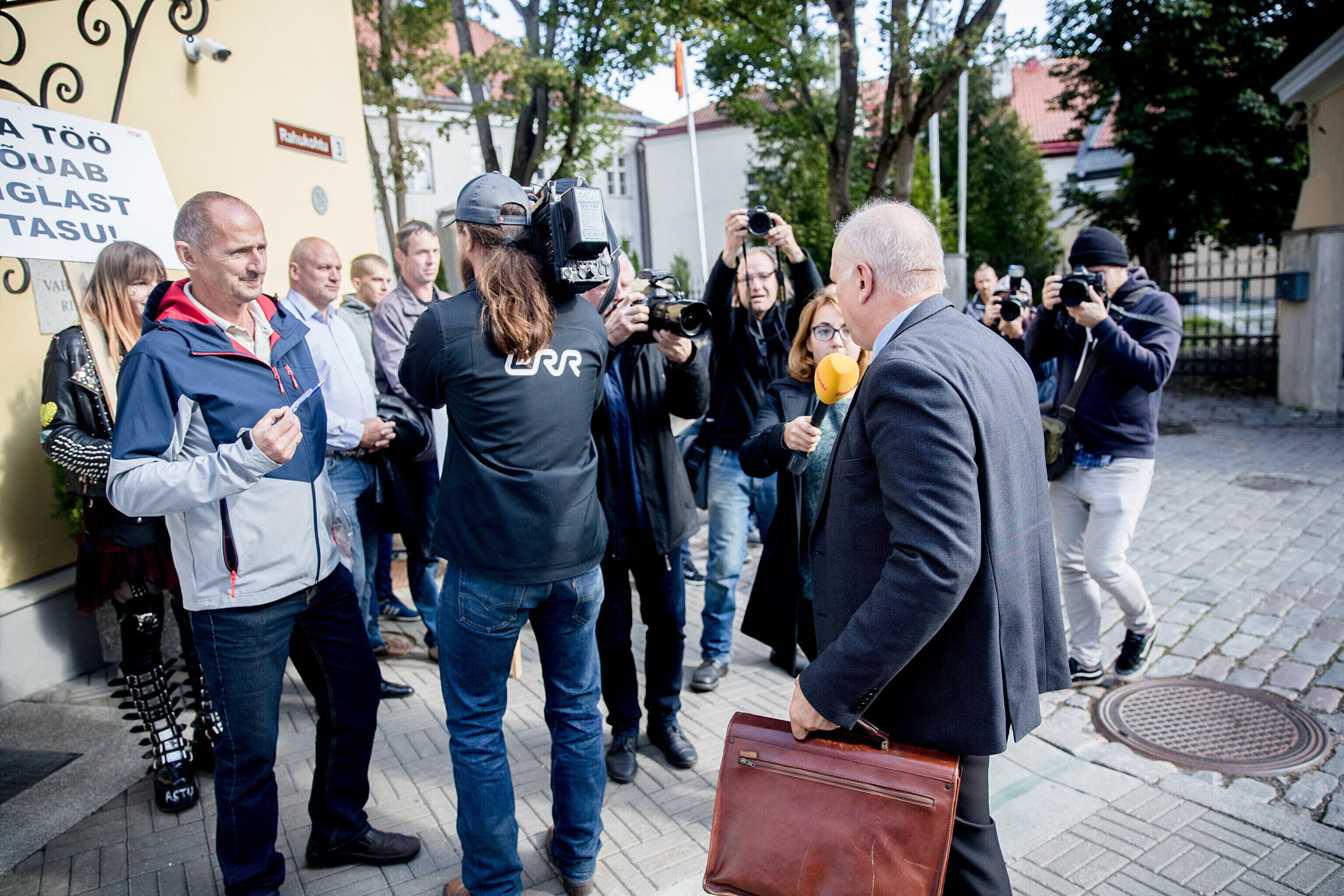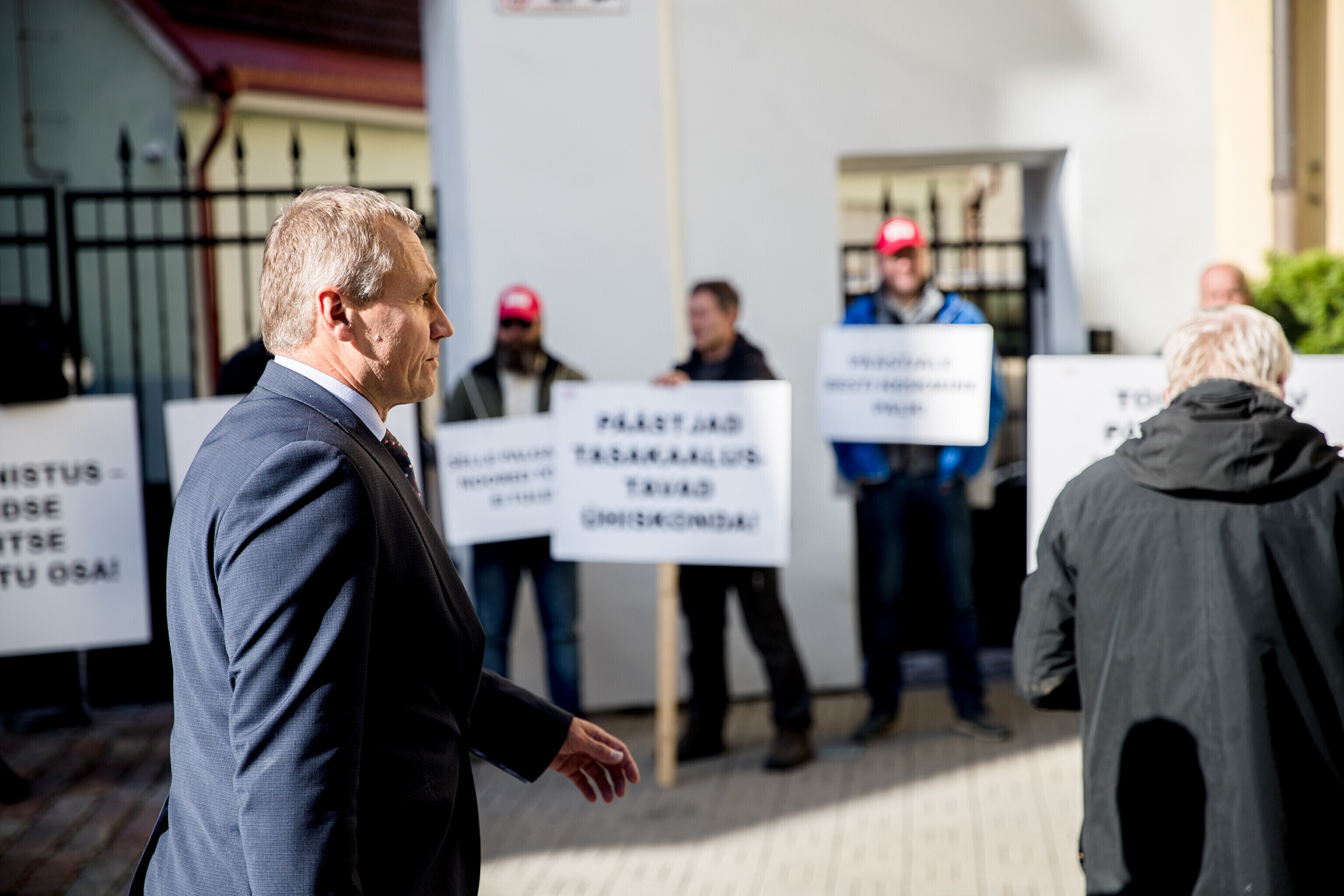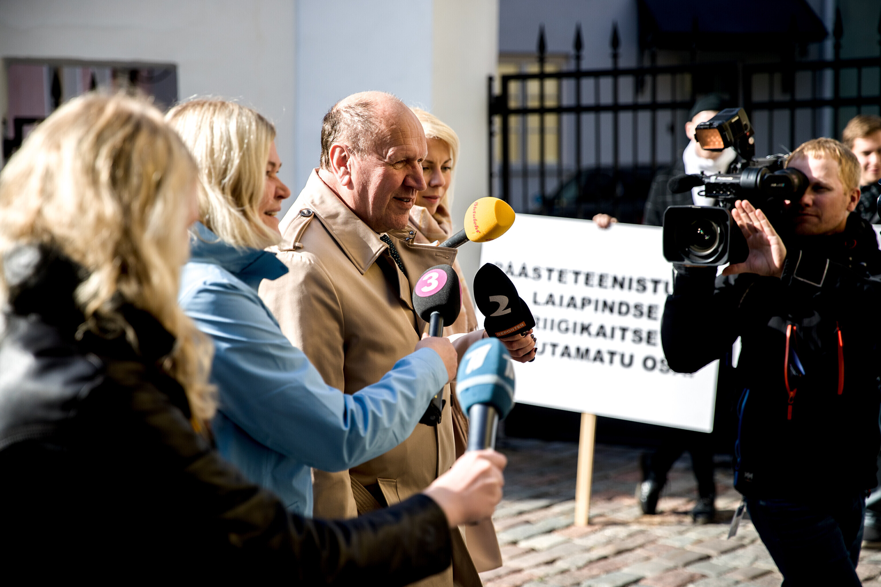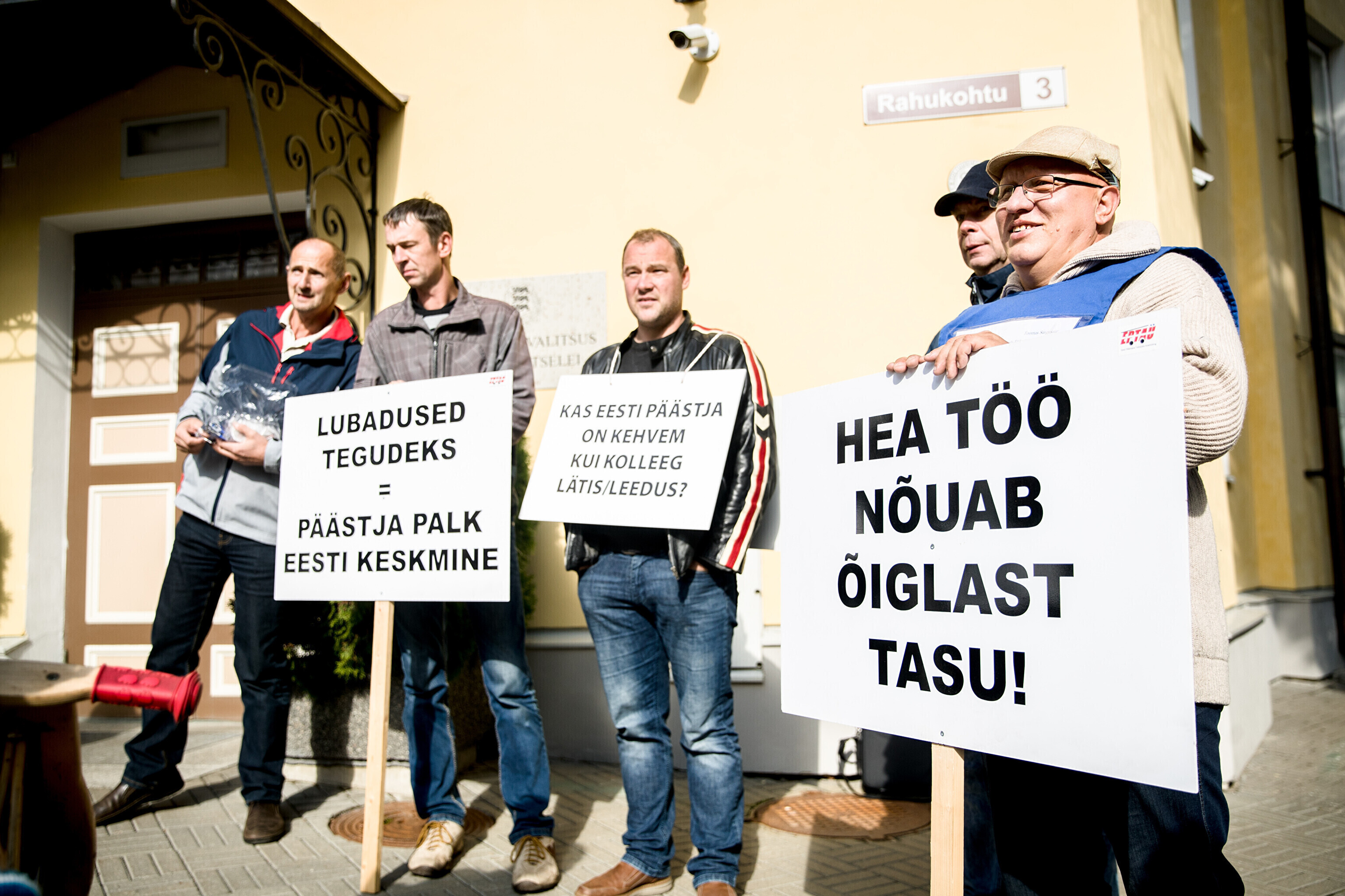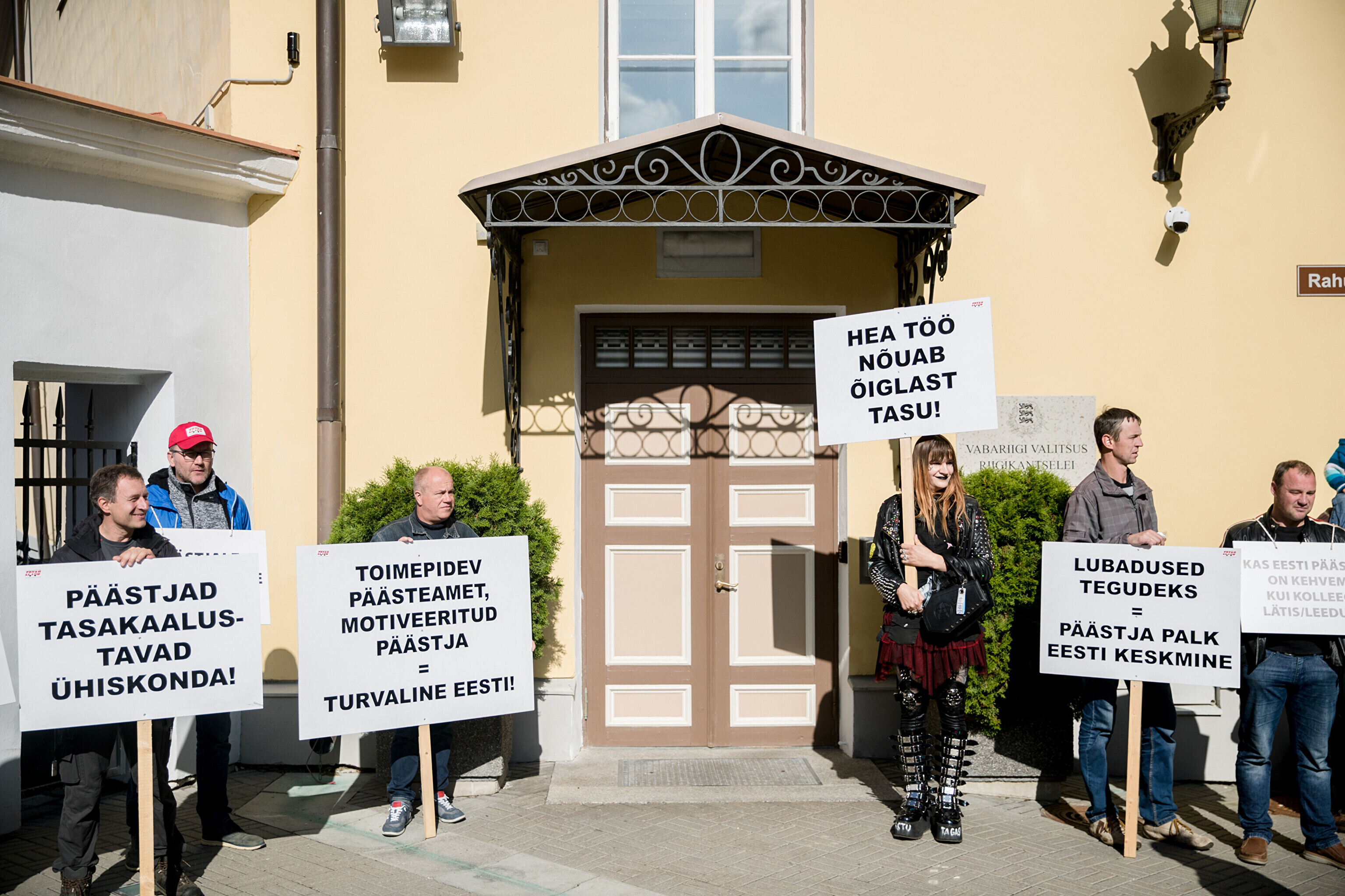 Rescue workers held a protest outside Stenbocki Maja (Stenbock House) at Toompea, Tallinn on Thursday as the government gathered at a cabinet session to discuss the state budget.