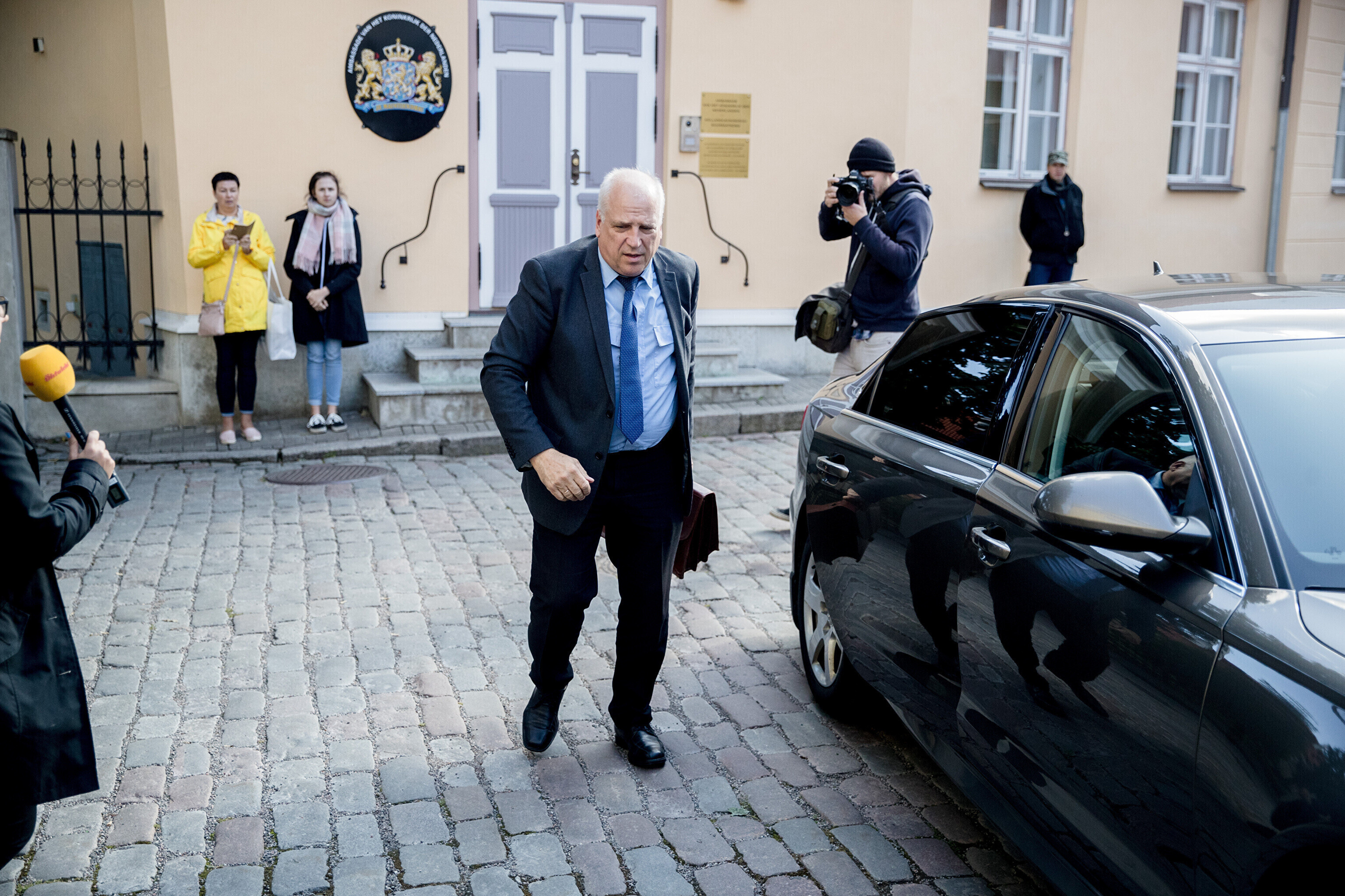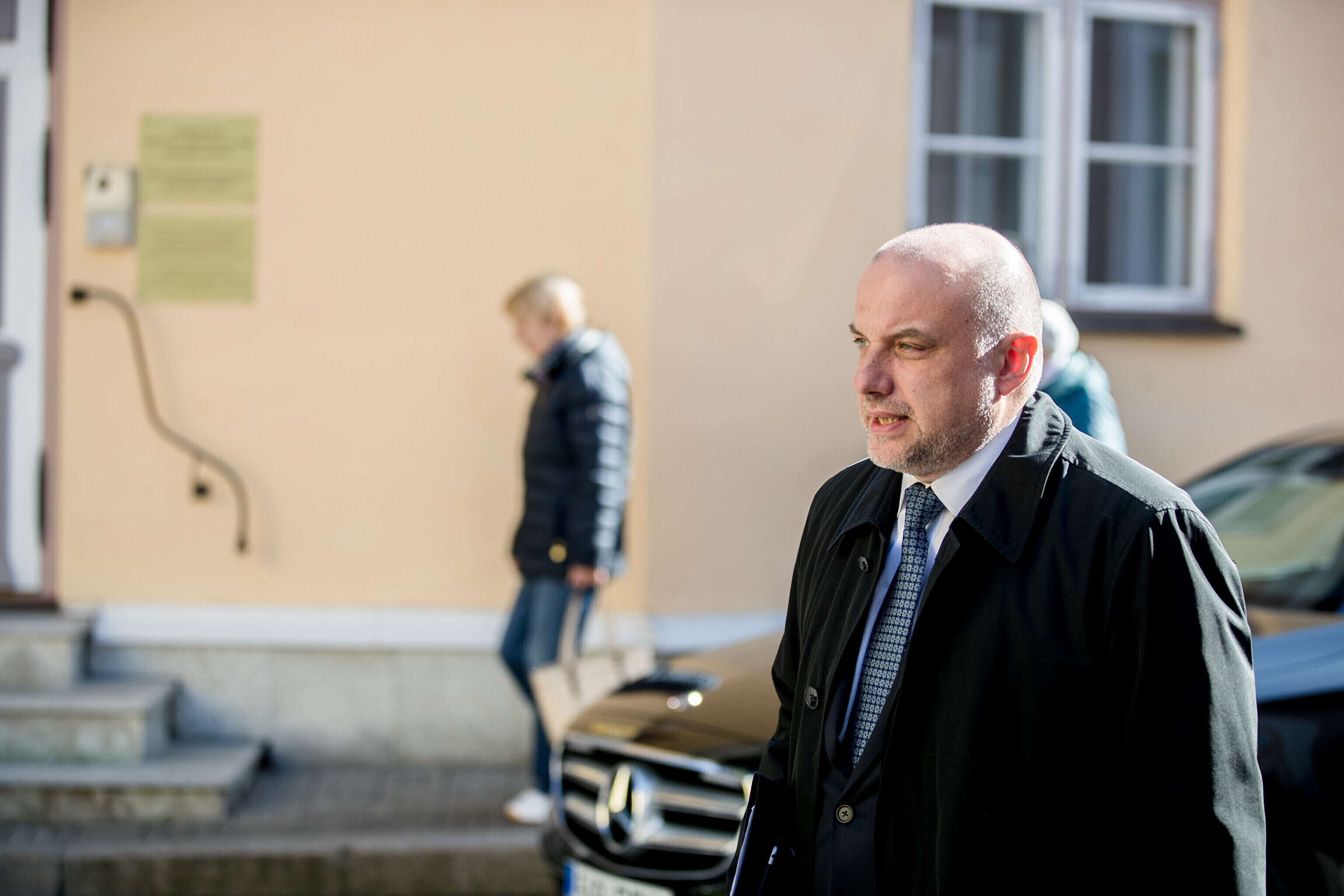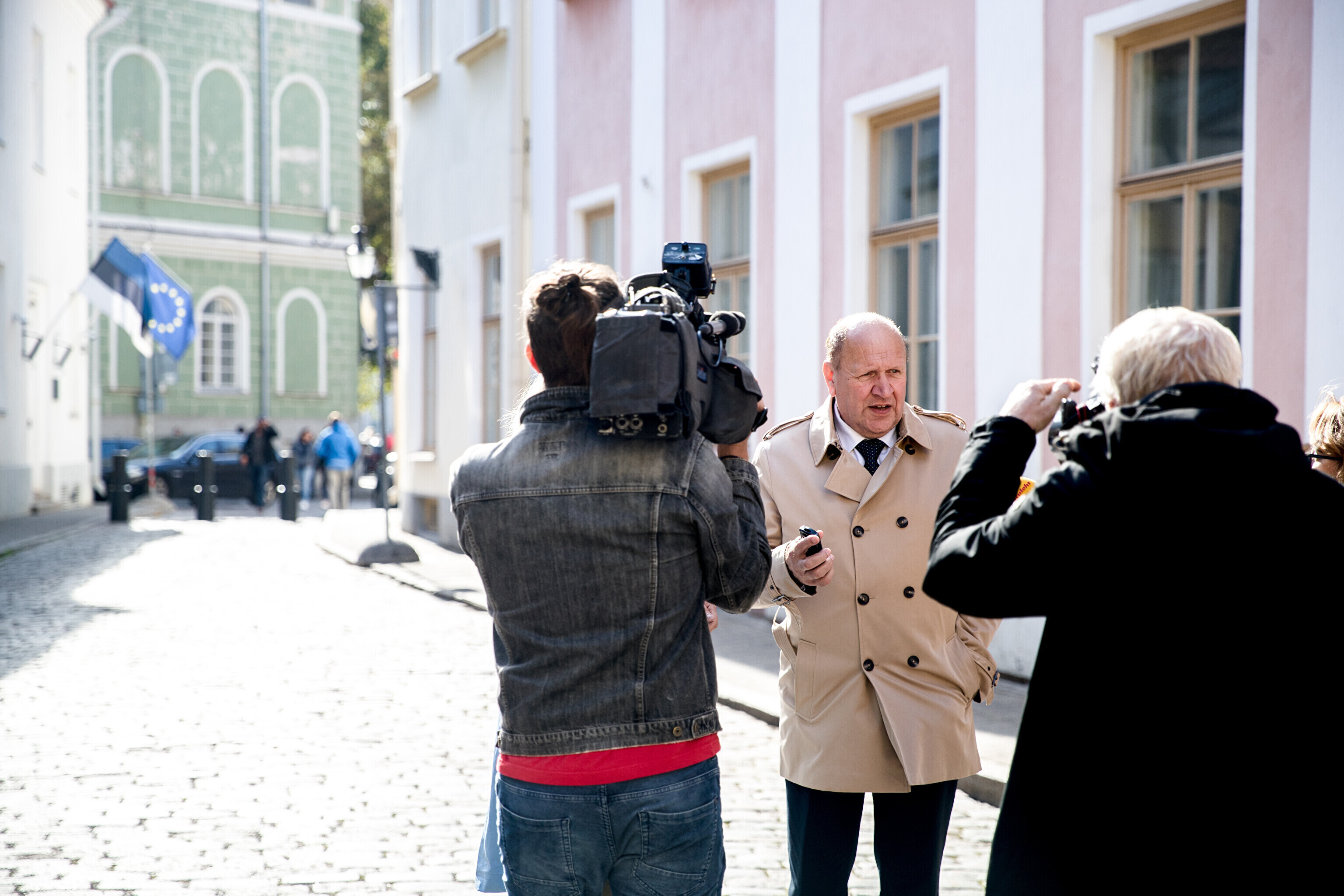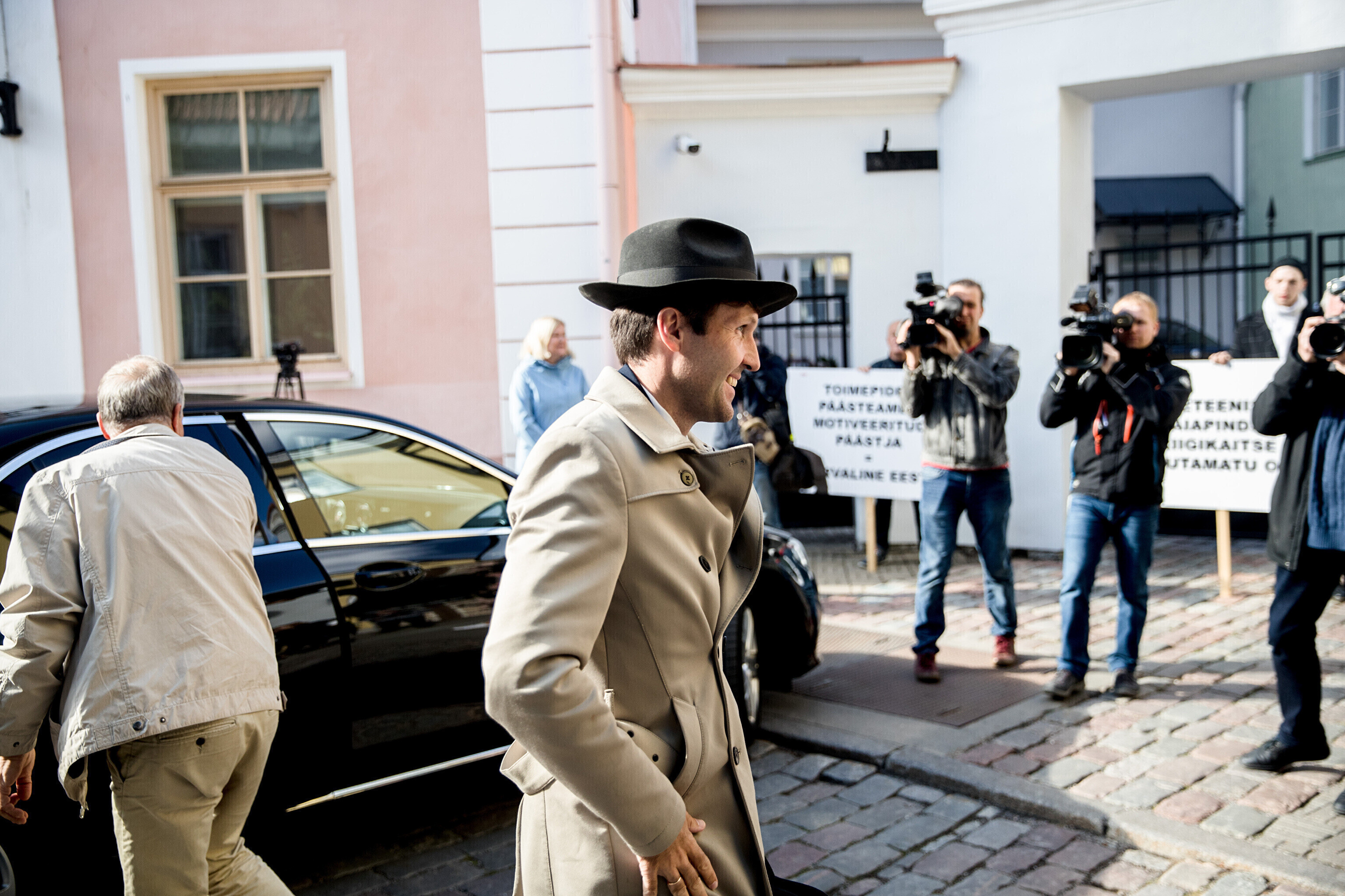 Rescue workers held a protest outside Stenbocki Maja (Stenbock House) at Toompea, Tallinn on Thursday as the government gathered at a cabinet session to discuss the state budget.