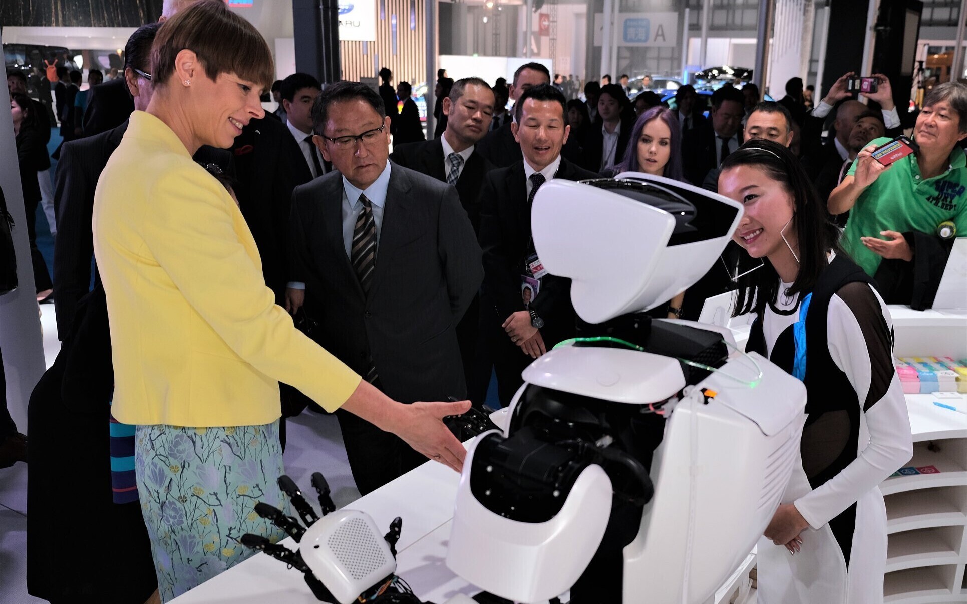 "While yesterday in Japan was declared a public holiday due to the coronation celebration, today we had different encounters with humans and robots," Kaljulaid wrote on Facebook on Wednesday.